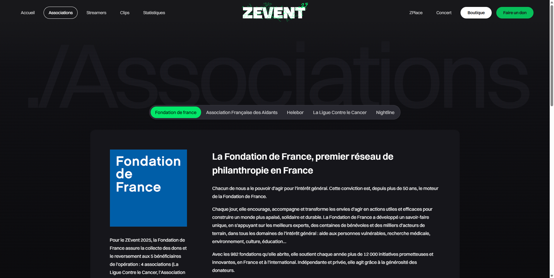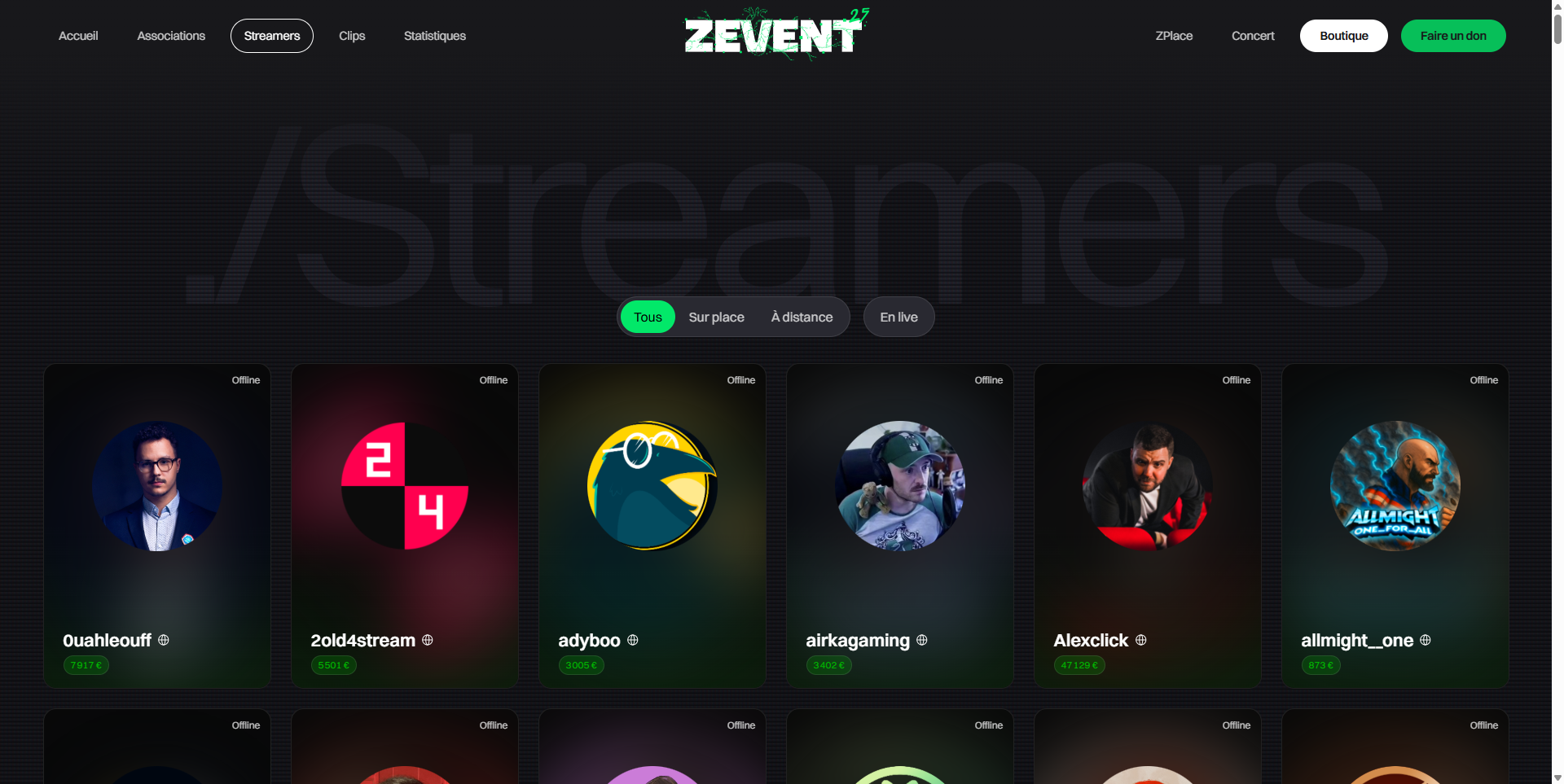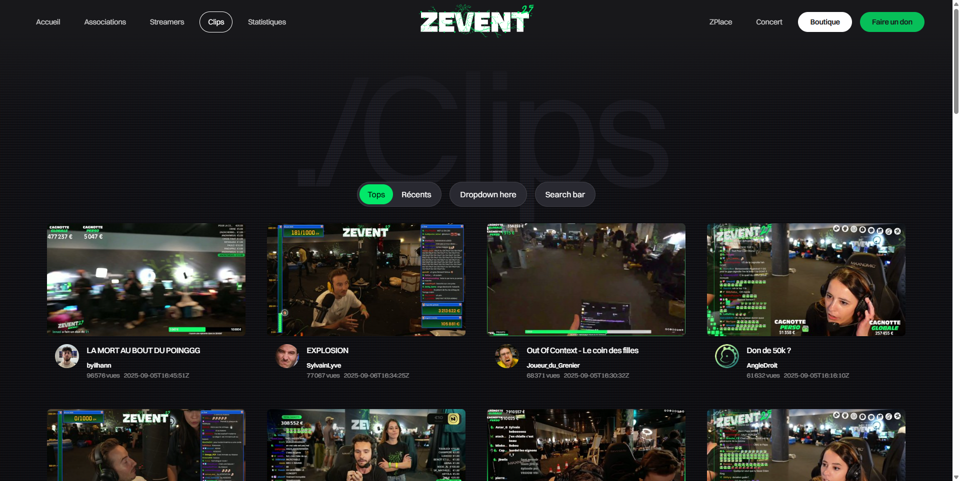 Voir le site webIntégration de la maquette de BastiUi qui à redesign le site du ZEVENT (Lien de la maquette : https://www.figma.com/community/file/1559521225721548044)